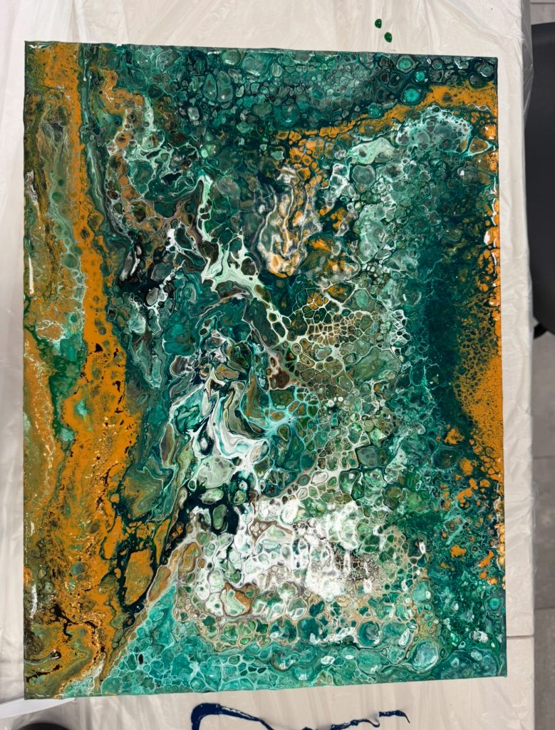 All supplies included. Choose your colors and learn how to prepare your paint using a flow medium water and silicone. We pour all our colors into a big cup turn our canvas upside down flip it over and lift. Watch the magic happen!! Pieces will not be ready for pick up until they are fully dry.